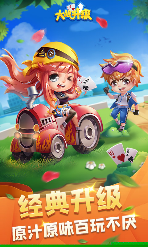 大眼升级是一款融合了拖拉机、80分、双抠等经典玩法的纸牌竞技游戏,以其独特的叫主、炒底、甩牌规则为核心,重现了传统双升的紧张与策略,为提供了兼具怀旧感与竞技性的线上卡牌对战体验。