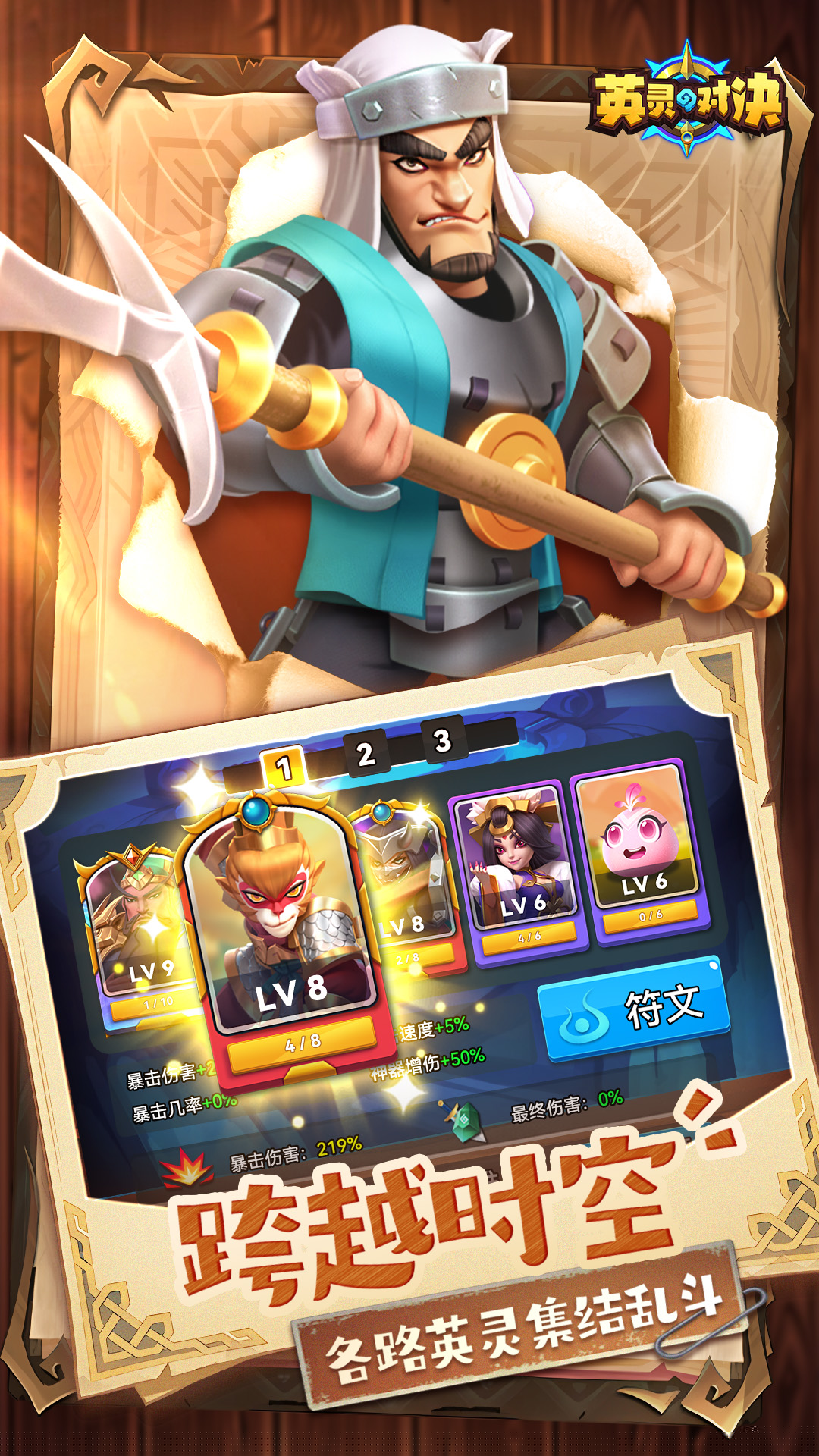 汇集跨越时空的传奇人物,每位都具备专属技能与成长线。