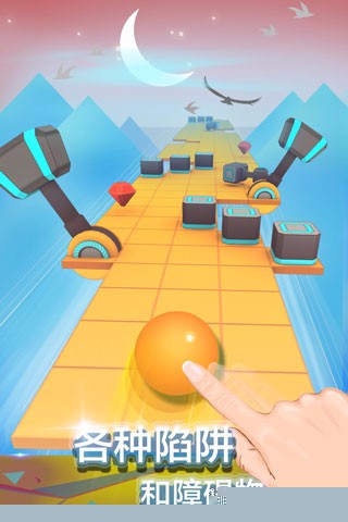 通过左右滑动屏幕控制小球横向移动,避开路上的各类陷阱与障碍。