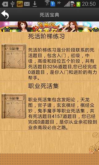 软件包含死活宝典、手筋大全、官子练习三大核心训练库,每个库均按难度分级,用户可循序渐进学习。
