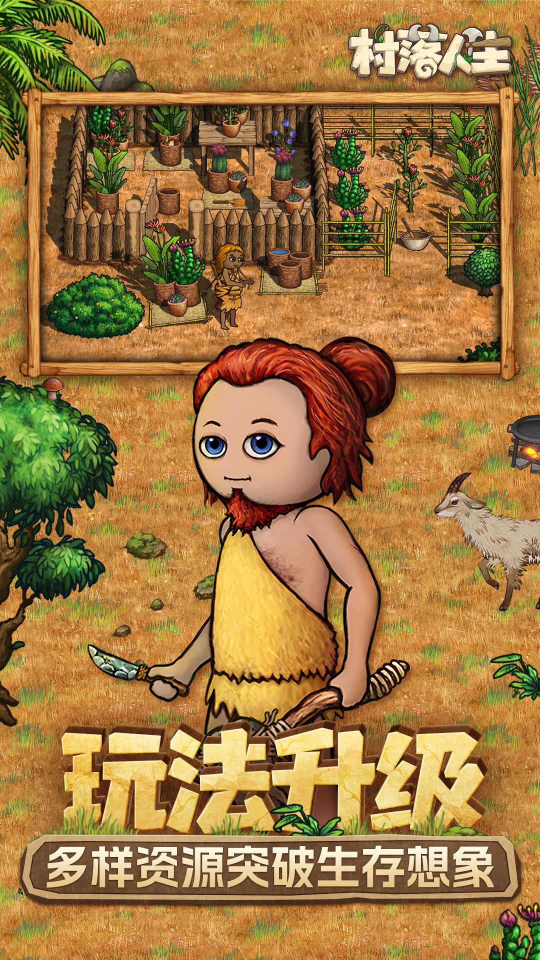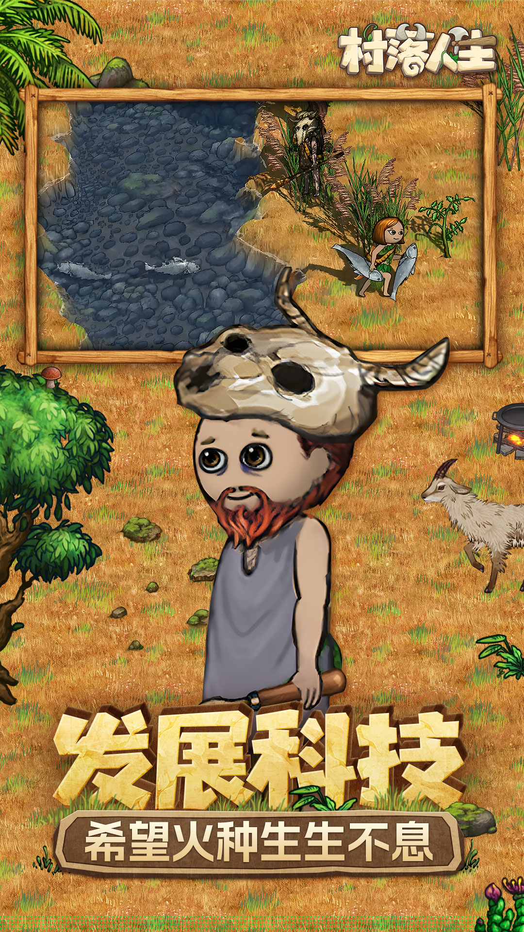 逐步解锁科技,提升工具与建筑等级,高效开发资源,并规划村落功能区布局。