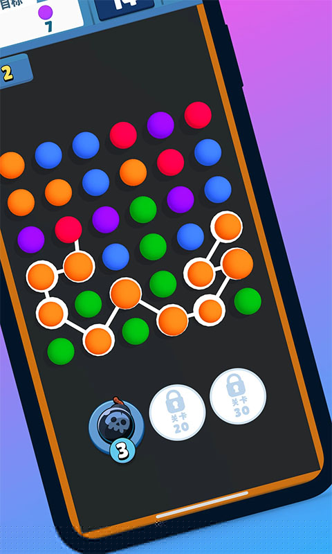 开心连球球是一款休闲益智类消除游戏,通过连接相邻的同色球体完成消除,连线越长得分越高,过程轻松解压,适合全年龄段在碎片时间体验。