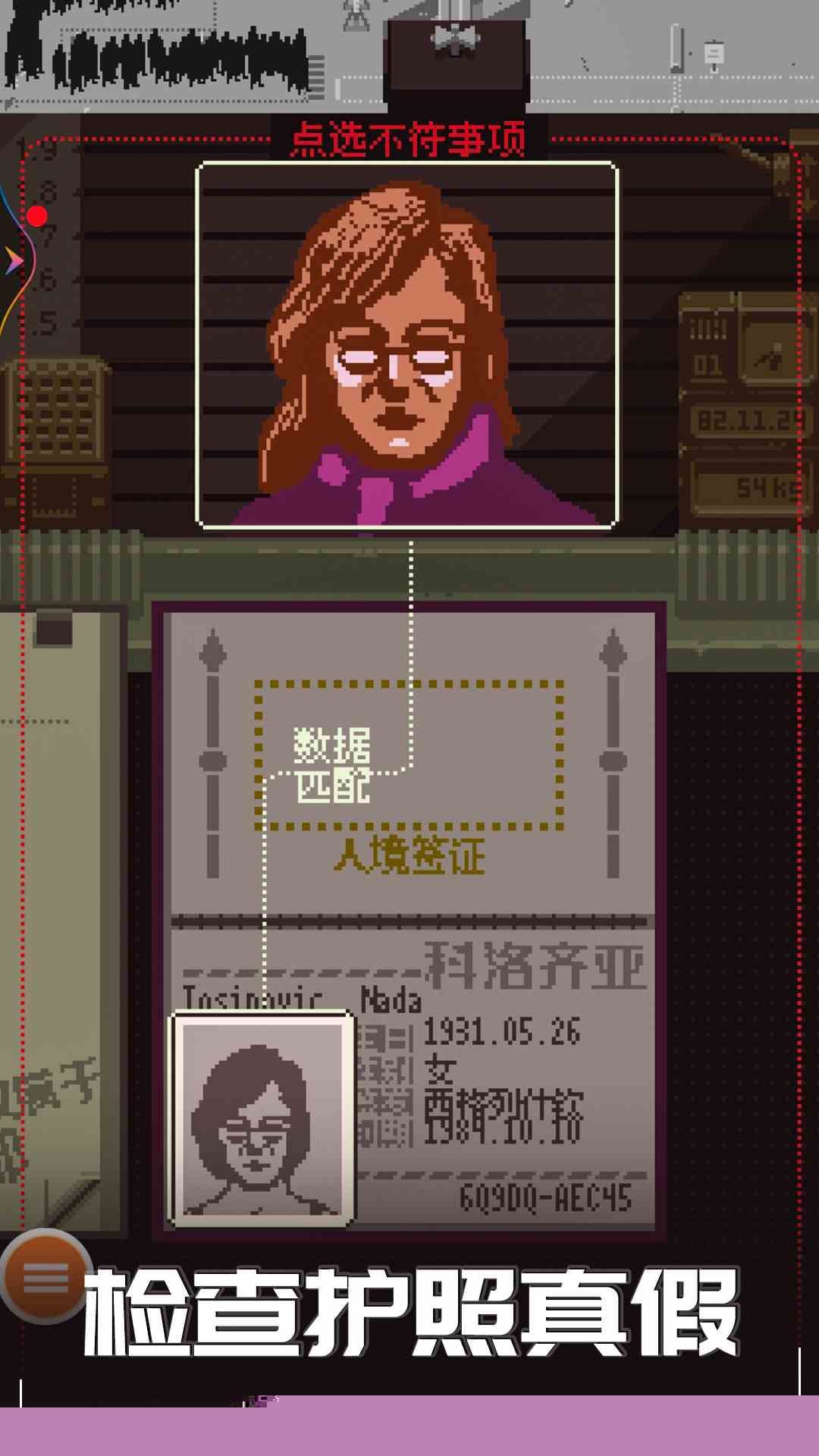 面对可疑人员,通过对话盘问挖掘矛盾点,结合每日更新的通缉令进行比对,最终决定批准、拒绝或扣留。