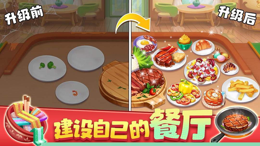 利用收益升级厨房设备、雇佣员工并解锁新的食材。