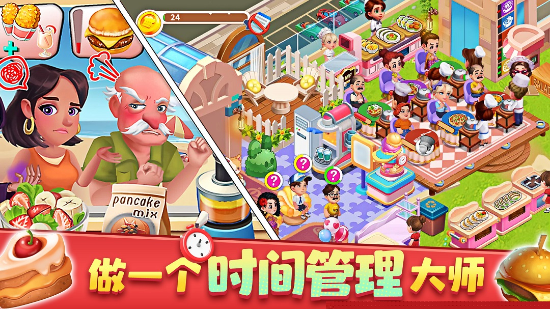 与市面上同类经营游戏相比,更注重餐厅的个性化成长与顾客的情感互动。